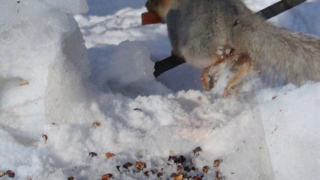 Белка, которая пыталась укусить меня, а потому убежала к себе в дупло