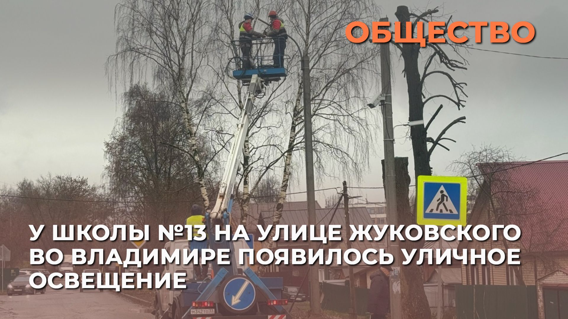 У школы №13 на улице Жуковского во Владимире появилось уличное освещение