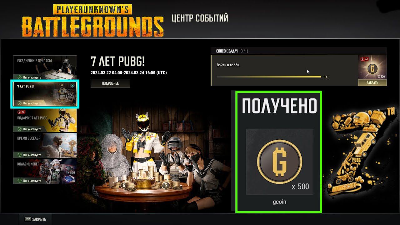 PUBG ✅7 лет PUBG!✅500 Gcoin за вход в игру✅7th Anniversary✅500 G-coin for entering the game