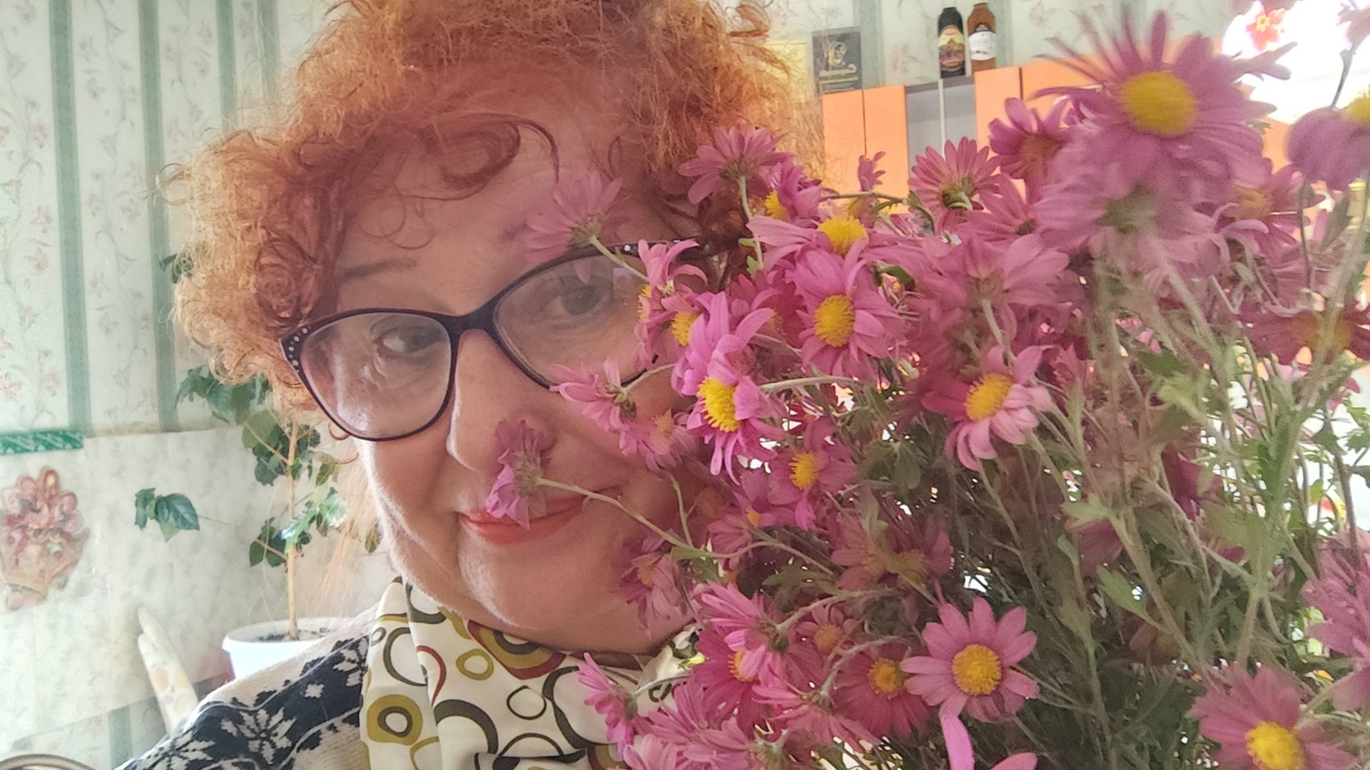 Прошлись с соседкой Тамарой по магазинам. Продукты. Последние цветы....