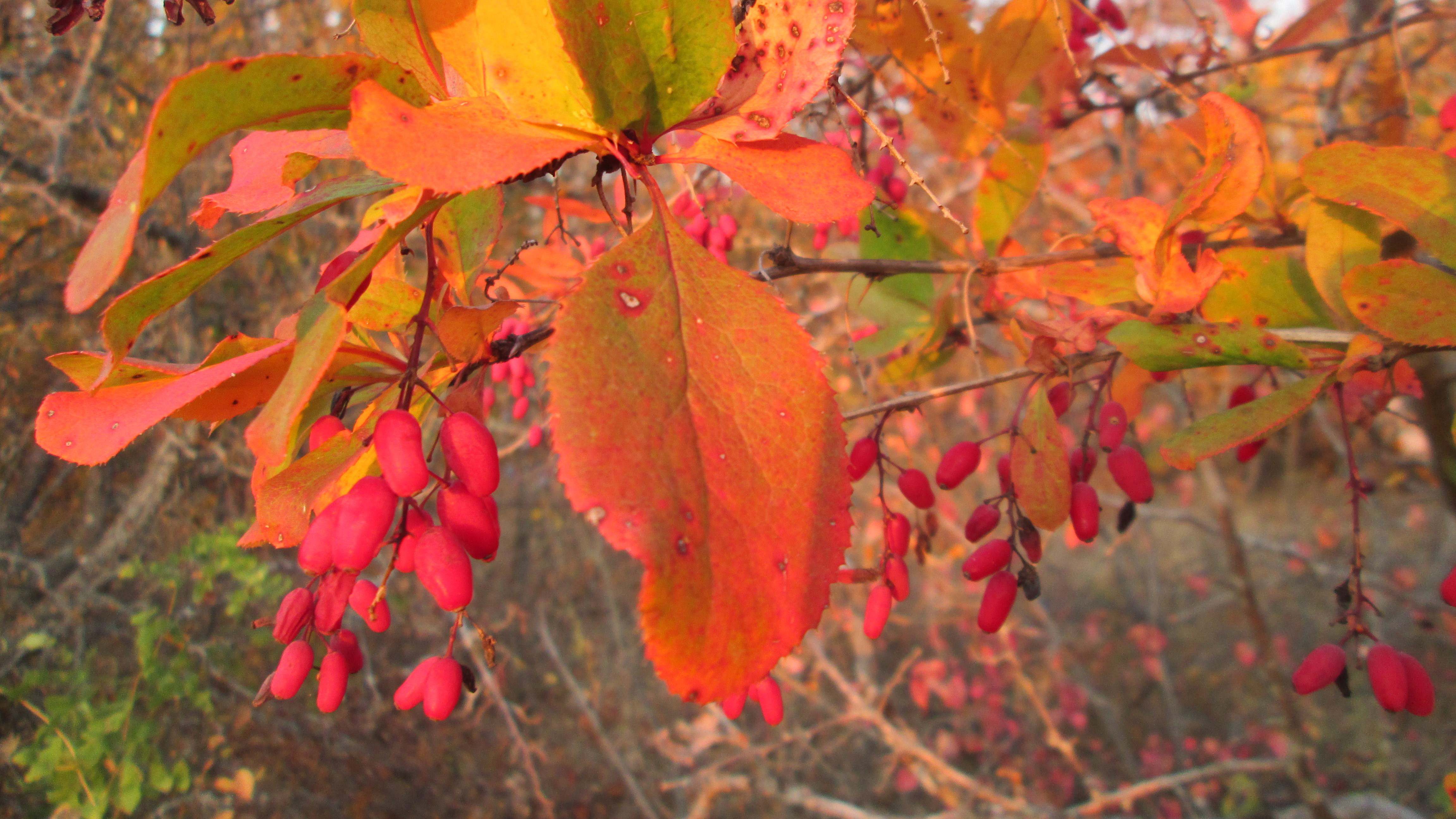 Так выглядит барбарис. Сняла на видео его осенью в лесу
