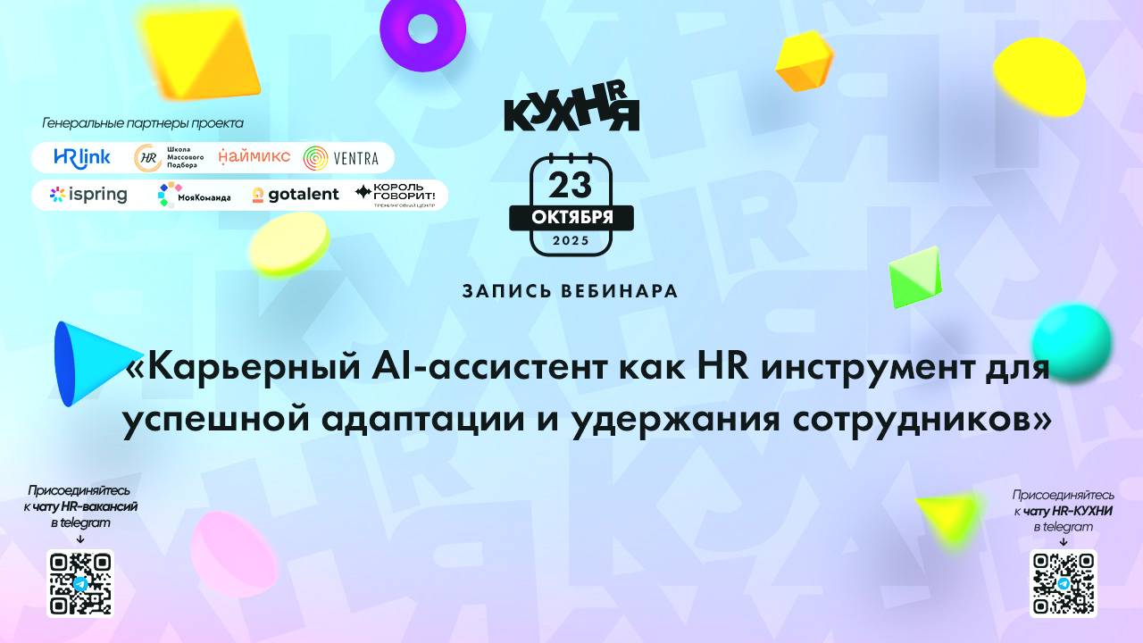 Присоединяйтесь к чатам и каналам HR-КУХНИ в телеграм: - Основной чат HR-КУХНИ в телеграм - https://t.me/+tYgAH0PgPQVkOWIy - Канал HR вакансий в телеграм - https://t.me/+CMNAN2u1hjo3M2Ri - Канал HR-EVENTS в телеграм - https://t.me/hr_kitchen - Канал HR JOURNAL в телеграм - https://t.me/hrkitchenjournal Полезные ссылки: - Каталог HR решений - https://hrkitchen.ru/exhibition - График конференций, бесплатных вебинаров, а также бесплатные курсы – https://hrkitchen.ru/ - Стать спикером HR-КУХНИ - https://hrkitchen.ru/speakers - Подписаться на полезную e-mail рассылку от HR-КУХНИ (новости, гайды, чек-листы, подарки от партнеров) - https://hrkitchen.ru/subscribe Реклама. ООО "Робин", ИНН: 9725022632 | ЕРИД: 2VfnxwyQbr9