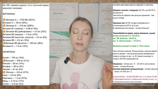 Тайм-коды: 1) 00:00 Как включать укроп в питание? 2) 0:38 Белок в составе укропа; 3) 1:03 Клетчатка в укропе и длительная сытость; 4) 3:05 Пребиотические свойства; 5) 3:32 Жиры в составе укропа (омега-3); 6) 4:10 Углеводы в составе укропа; 7) 4:57 Чрезмерное количество зелени - чем плохо? 8) 6:08 Фитаты и оксалаты в укропе; 9) 7:54 Сколько и в каком формате употреблять укроп; 10) 8:40 Потери витаминов и минералов, нарезка, хранение и сушка, термообработка; 11) 10:49 Лучшая форма укропа для ежедневного питания; 12) 11:30 Микрозелень или зелень в горшочке; 13) 13:40 Какую зелень я рекомендую; 14) 14:55 Проваривание зелени в супе. Пироги с зеленью; 15) 15:41 Смузи с зеленью; 16) 17:06 Витамины зелени укропа (как пример, укроп в магазине); 17) 18:03 Витамин А (каротиноиды зелени); 18) 20:01 Витамин С зелени укропа; 19) 21:00 Витамин В9 - фолиевая кислота; 20) 21:19 Витамин К в зелени укропа; 21) 22:32 Витамин С в сушеной зелени; 22) 23:15 Витамин В2. Вымачивание и потери; 23) 24:01 Другие витамины и синергизмы; 24) 24:30 Витамины зимой в зелени. Заготовки; 25) 26:38 Как убрать отеки? 26) 28:53 Выводы. Укроп в здоровом питании. Дополнительное видео: Заморозка зелени дома: https://www.youtube.com/watch?v=pTWDAstah-Q&t=1315s Хлорофилл: нужно ли пить как БАД: https://www.youtube.com/watch?v=i9t8_MYj9pA&t=530s Заморозка зелени: потери витаминов и минералов: https://www.youtube.com/watch?v=pTWDAstah-Q&t=1315s&pp=0gcJCQMKAYcqIYzv Руккола: https://www.youtube.com/watch?v=Rh8Gw42ldW8&t=429s Польза Гречневой крупы: https://www.youtube.com/watch?v=fXtybtvprAo&t=519s Усвоение железа: https://www.youtube.com/watch?v=8TDR1pJC210&t=337s В каких продуктах содержится железо: https://www.youtube.com/watch?v=2bfkLYB7AZ0&t=5s&pp=0gcJCQMKAYcqIYzv Ж/Д Анемия: https://www.youtube.com/watch?v=ee3BtA1UCcc&t=3s Мой Телеграм: https://t.me/fitnessmaria Мой сайт: https://maria-safina.ru/ Запись на мой авторский курс «Искусство Здорового Рациона»: https://maria-safina.ru/iskusstvo-zdorovogo-raciona Участие в группе «Готовый Рацион»: https://maria-safina.ru/gotovye-raciony-ot-nutriciologa Участие в группе «Разборы Составов Продуктов»: https://t.me/tribute/app?startapp=szwD Участие в марафоне Здоровых Привычек Марии Сафиной: https://kurs.maria-safina.ru/marafon-zdorovyh-privychek-marii-safinoj Запись на мой авторский курс «Пищевые Жиры и Здоровье»: https://kurs.maria-safina.ru/kurs-pishchevye-zhiry-i-zdorove Мои сертификаты и дипломы: http://maria-safina.ru/obo-mne Бесплатная книга «Искусство Здорового Рациона» на Литрес: https://www.litres.ru/book/mariya-safina/iskusstvo-zdorovogo-raciona-dokazatelnaya-nutriciologiya-dly-70496446/ Подробнее о «Дне Здоровья» и других корпоративных программах: https://maria-safina.ru/den-zdorovya Использованные исследования: 1. Xiao Z. et al. (2012). Microgreens of Brassicaceae: Concentrations of phytochemicals and vitamins. J. Agric. Food Chem., 60(31):7644–7651. 2. Miedico O. et al. (2020). Mineral and trace element content in microgreens and mature leafy vegetables. Food Chem., 309:125–130. 3. López A. et al. (2020). Effect of drying methods on the retention of bioactive compounds in herbs. Food Chem., 332:127417. 4. Olsson M.E. et al. (2021). Ascorbic acid and polyphenols in herbs during storage and processing. Food Sci. Nutr., 9(2):899–910. 5. Bhat R. & Stamminger R. (2015). Impact of drying technologies on nutritional value and aroma compounds in herbs. J. Food Eng., 165:155–163. 6. USDA FoodData Central (2023): Dill, fresh. 7. Healthline (2023): Microgreens Nutrition: All You Need to Know.