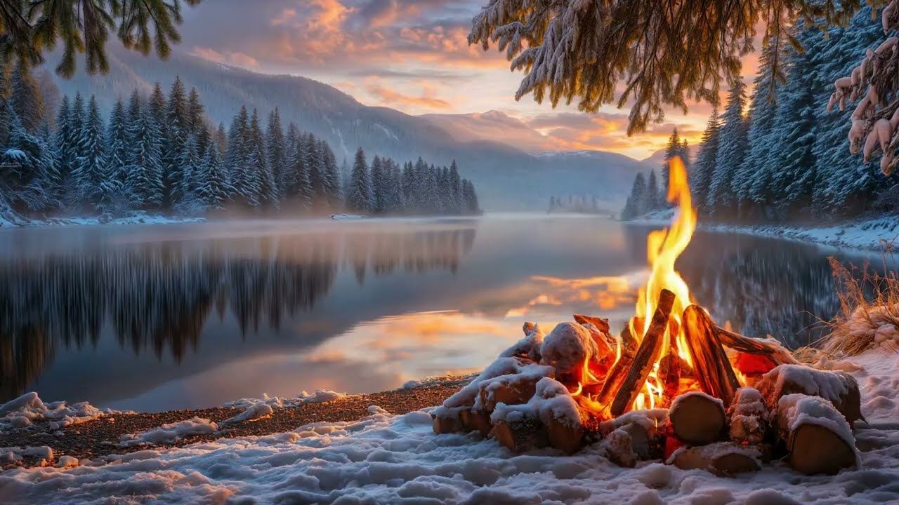Умиротворяющая Атмосфера Зимы. Тихий вечер у Костра.