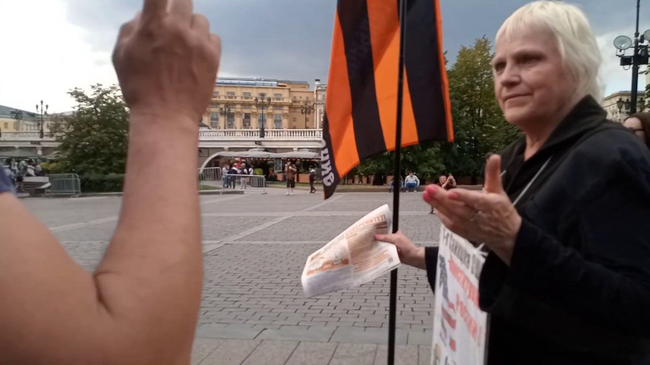 Рядовой прохожий говорит о возврате границ СССР и символе Победы красном флаге.