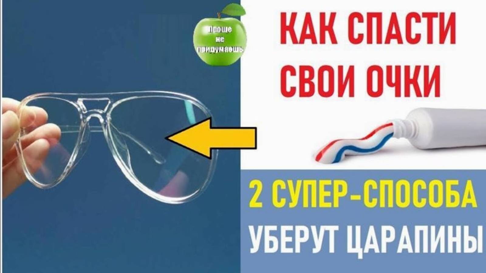 Не спешите покупать новые очки! 99% того, что хоть 1 из этих трюков сделает ваши старые очки «как новенькие»! Каждый, кто носит очки, понимает, что независимо от того, насколько вы осторожны, вы можете легко поцарапать свои очки. Поэтому мы рекомендуем вам сразу не покупать новые очки, а попробовать восстановить свои старые. Приветствую вас, друзья, на моём канале "Проще не Придумаешь"! Здесь вы найдете для себя много интересной и полезной информации. ************** ПРИСОЕДИНЯЙТЕСЬ В СОЦ СЕТЯХ Одноклассники: https://ok.ru/ok.nymka Группа ВКонтакте: https://vk.com/domhitrosti Телеграмм: https://t.me/idei_dolgoletie Темы: кулинария, здоровье, красота, молодость, дачные советы от А до Я, счастливая семейная жизнь,. Присоединяйтесь: https://rutube.ru/channel/23888703/ P.S. На канале информация даётся в ознакомительных целях. Прежде, чем использовать тот или иной рецепт, изучите тему основательно, проконсультируйтесь со знающим специалистом. Самое главное для человека, вести здоровый образ жизни, питаться правильно, побольше двигаться и радостно смотреть на мир! Здоровья вам, любви и добра! Благодарю за поддержку канала: Юmoney: https://yoomoney.ru/to/410014054575324?