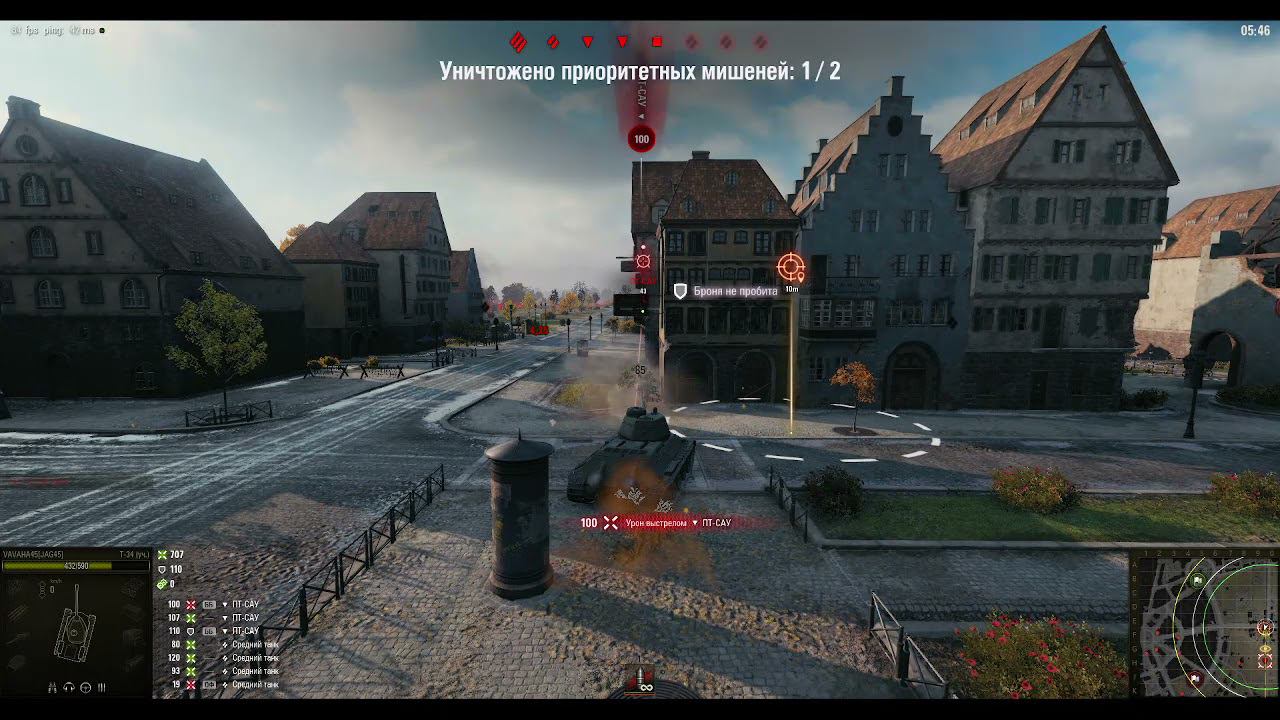 World of Tanks - Топография Сценарий 3 (Карта Руинберг) Атака через Перекрёсток Динамичный танк