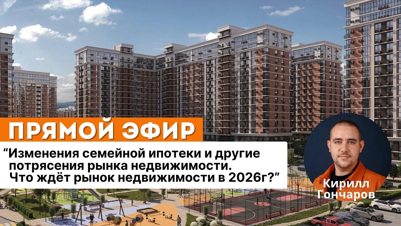 Прямой эфир на тему : “Изменения семейной ипотеки и другие потрясения рынка недвижимости. Что ждёт рынок недвижимости в 2026г?” 💴🌆 Эфир пройдет 28 октября в 18:00 (мск) 👈 🔹Спикер эфира: Кирилл Гончаров ❗️Программа эфира: 1. Изменения семейной ипотеки. Чего ждём и как это повлияет на покупателя? 2. Изменения в рассрочках и льготных ипотеках: чего ожидаем? 3. Изменения в налоговом законодательстве. Что будет и как повлияет на рынок? 4. ЦБ продолжает снижать ставку. Что дальше? Эфир пройдет на Youtube и в ВК Увидимся завтра 👋 отвечу на все ваши вопросы, расскажу о глобальных изменениях и к чему они ведут 🌆