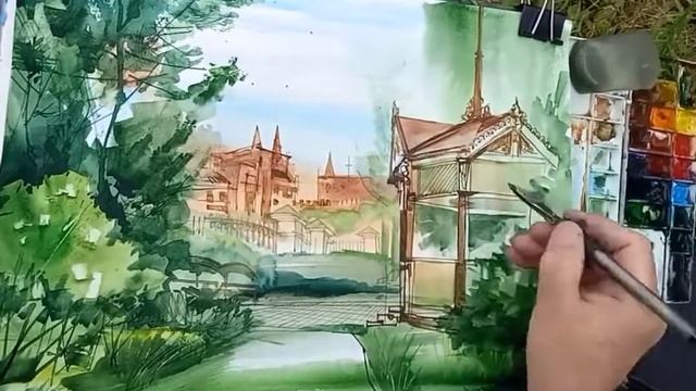 Городская зарисовка Акварель UrbanSketch Watercolor Рисование под музыку (ускорено) 21.08.2022