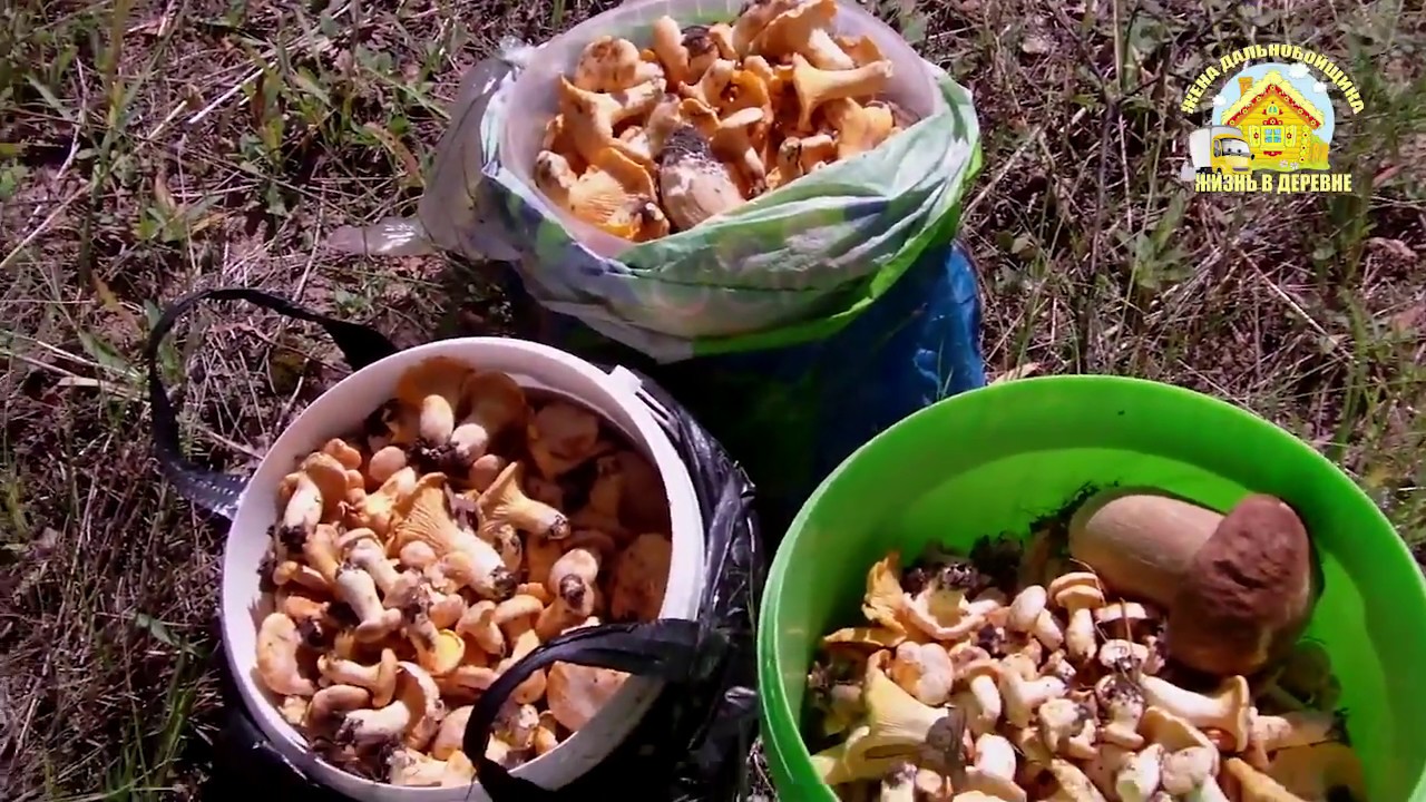 20 литров грибов за раз. Белые, лисички, подберезовики. Деревенская жизнь.