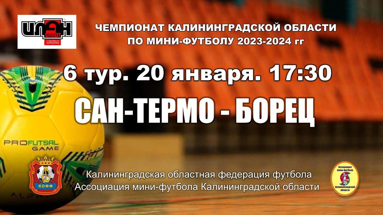 20.01.24. Мини-футбол. Чемпионат Калининградской области. Суперлига. 6-й тур. Сан-Термо - Борец