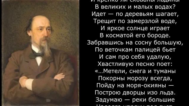 ….Не ветер бушует над бором, Не с гор побежали ручьи, Мороз-воевода дозором Обходит владенья свои. Глядит — хорошо ли метели Лесные тропы занесли, И нет ли где трещины, щели, И нет ли где голой земли? Пушисты ли сосен вершины, Красив ли узор на дубах? И крепко ли скованы льдины В великих и малых водах? Идет — по деревьям шагает, Трещит по замерзлой воде, И яркое солнце играет В косматой его бороде. Забравшись на сосну большую, По веточкам палицей бьет И сам про себя удалую, Хвастливую песню поет: «…Метели, снега и туманы Покорны морозу всегда, Пойду на моря-окияны — Построю дворцы изо льда. Задумаю — реки большие Надолго упрячу под гнет, Построю мосты ледяные, Каких не построит народ. Где быстрые, шумные воды Недавно свободно текли — Сегодня прошли пешеходы, Обозы с товаром прошли. Богат я, казны не считаю, А все не скудеет добро Я царство мое убираю В алмазы, жемчуг, серебро…» сгенерировано нейросетями SUNO, UDIO
