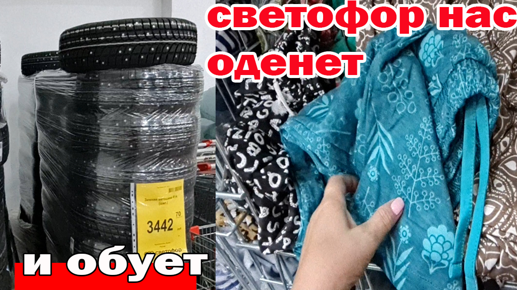 Вот это да.Не верю своим глазам. СВЕТОФОР нас и обует и оденет.Шины для машин трикотаж сапоги галоши