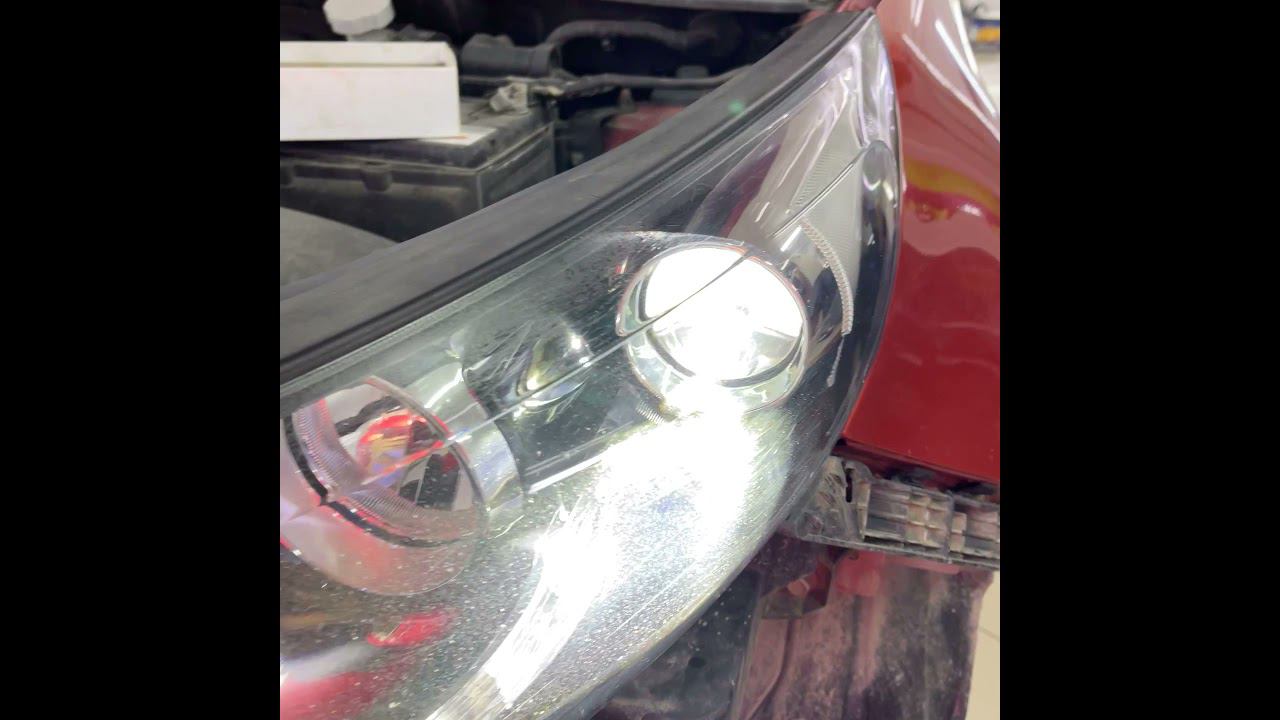 Kia Sportage 2012 года выпуска. ✅Вместо освещающего штатного галогена установили bi-led модули Aozoom A5+. Идеально для дальних поездок. Владелец уже наслаждается чёткой светотеневой границей и широким пучком света. ✅Перетянули затёртый руль в экокожу с утолщением. Украсили яркой оранжевой строчкой в цвет кузова.
