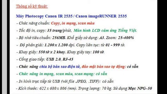 Liên hệ Minh Sang: 0907.783.992 -- 08.3922.5452 Yahoo & Skype: sang_tandaithanh Website: http://canontandaithanh.com.vn/canon/?may-photocopy/may-photocopy-canon-ir-2535-A1A70AA394