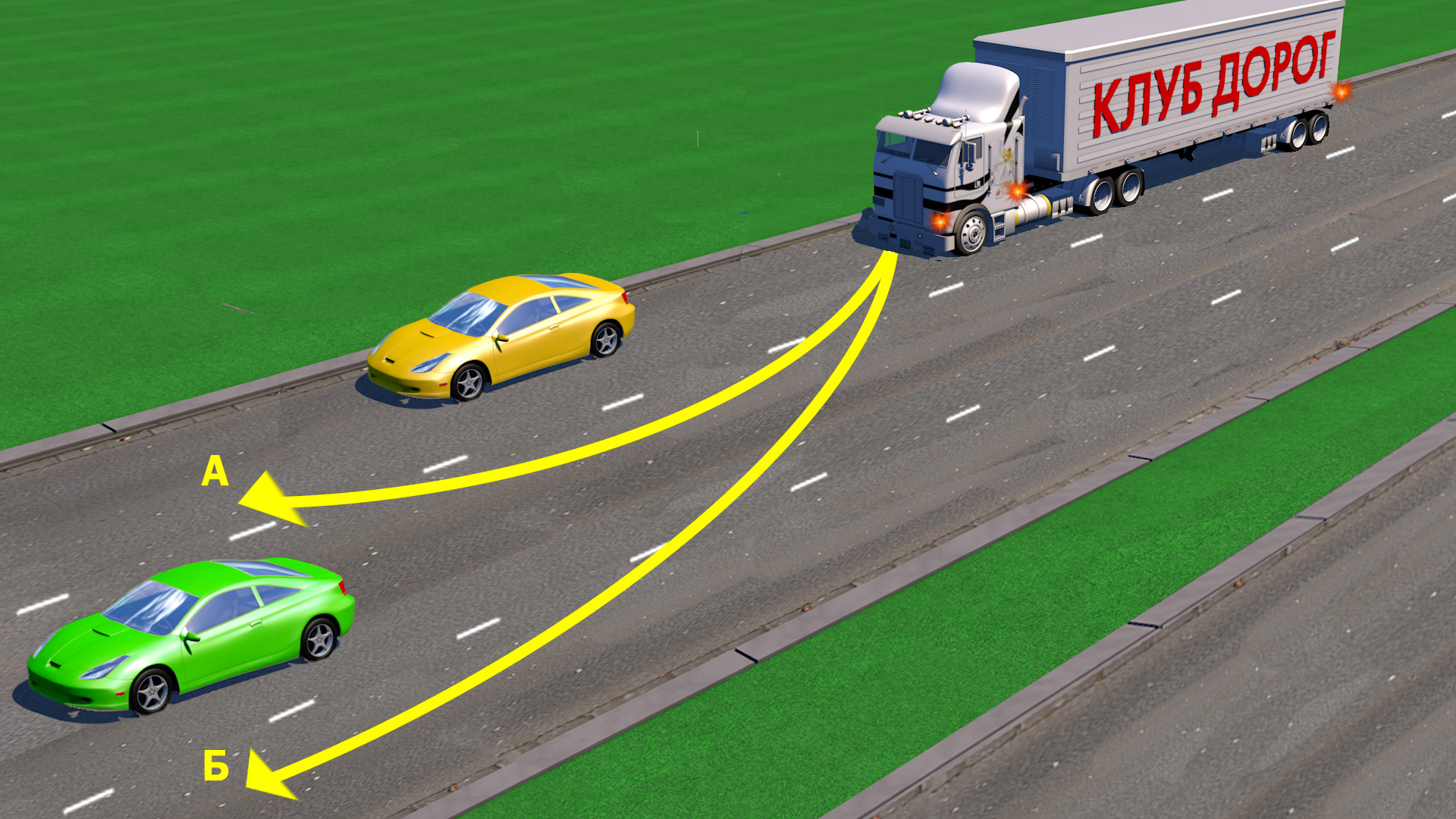 По какой из траекторий разрешено опережение водителю грузового автомобиля?