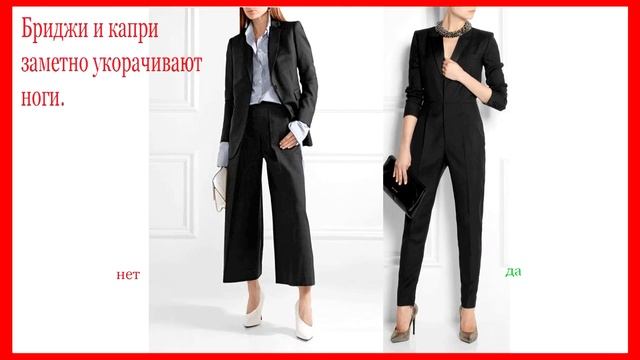 Маленькие девушки кажутся ещё ниже, если: Надевают одежду контрастных цветов. Наряд, разбитый на цветовые зоны, зрительно режет и приземляет фигуру. Носят юбки-клёш. Широкие юбки также крадут сантиметры роста. Наряжаются в длинные платья, скрывающие обувь. Если нравятся наряды «в пол», старайтесь хотя бы оставлять открытыми туфли. Надевают бриджи и капри. Такие брюки заметно укорачивают ноги. Облачаются в джинсы, декорированные блёстками, пайетками и бисером. Все это лишь подчёркивает небольшой рост. Носят джинсы так называемой низкой посадки. Заниженную линию талии могут позволить себе только обладательницы длинных, стройных ног. Комплектуют наряд безразмерным свитером или широкой футболкой. Просторная одежда не для маленького роста, так как в ней вы будете выглядеть ниже. Что касается обуви, здесь также есть свои «не»: Не носите слишком яркие туфли. Они привлекут внимание к нижней части вашего тела, в результате чего вы будете казаться ниже. Не покупайте обувь с «режущими» ногу тесёмками и ремешками. Туфли должны полностью открывать щиколотку и подъёмную часть стопы. Как зрительно увеличить рост с помощью одежды? Прибавить себе несколько сантиметров можно с помощью причёски, высоких каблуков, а также одежды и обуви определённого типа. Вытянуть образ помогут: Юбки силуэта «карандаш» и широкие брюки. Такие фасоны предпочтительны при объёмных бёдрах. Гладкие корректирующие брюки и джинсы. Они очень стройнят и удлиняют силуэт. Приталенные наряды и платья-футляры, если они сшиты из однотонной, но не чёрной ткани. Юбки и брюки с вертикальным рисунком. Орнамент или полосы, направленные сверху вниз, зрительно делают силуэт выше и стройнее. Блузки и платья с открывающим шею вырезом V-образной формы, а также с достаточно глубоким декольте. Оставляйте открытой шею и расстёгивайте блузку сверху на 1–2 пуговицы. Платья из лёгких струящихся тканей. Вертикальные складки таких нарядов зрительно добавляют несколько сантиметров роста. Туфли-лодочки телесного цвета. Cерьги-нити, удлинённые кулоны, узкие шарфики.