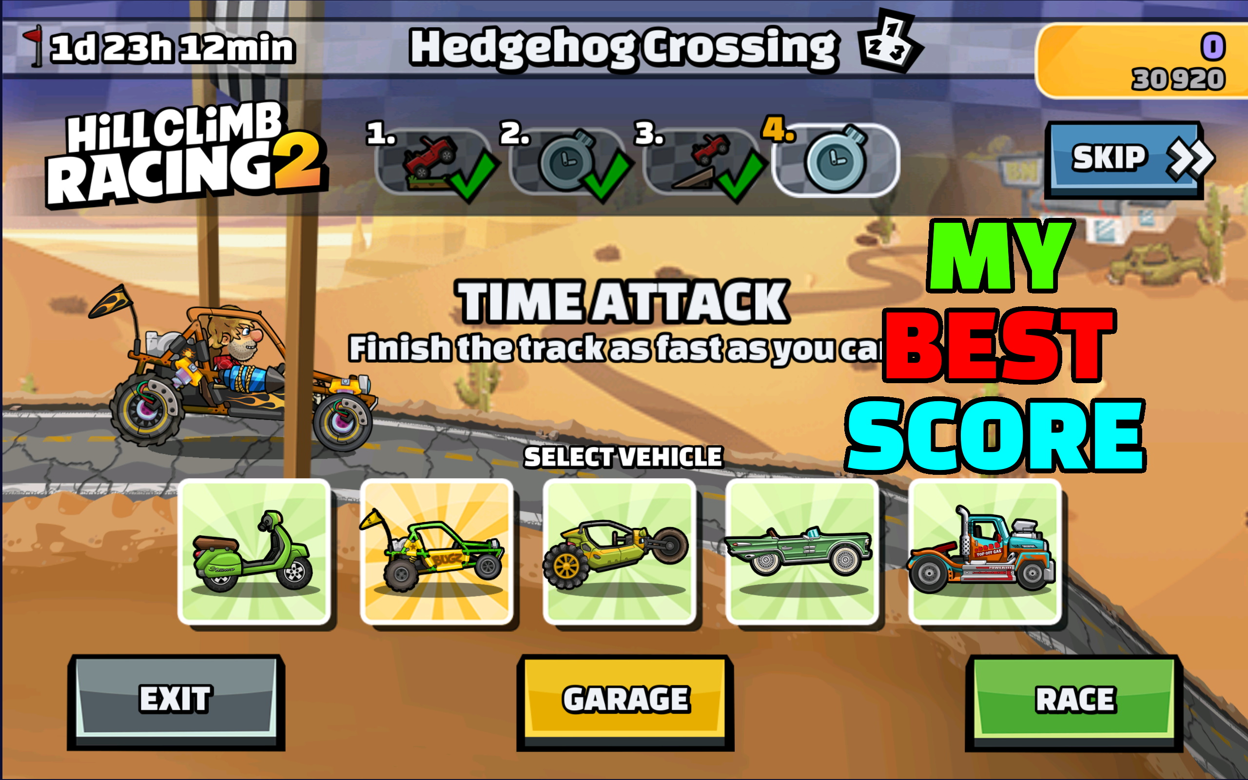 Hill Climb Racing 2 - ? My BEST Score ? (Hedgehog Crossing)