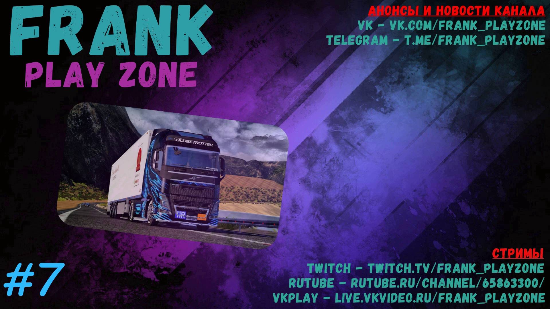 Добро пожаловать на канал Frank Play Zone! 🚚🎮 Здесь вы найдете увлекательные стримы по Euro Truck Simulator 2, а также уютное сообщество любителей игр и приятных ламповых трансляций с общением. Мы создаем атмосферу тепла и дружелюбия, где каждый сможет расслабиться, пообщаться и поделиться своими впечатлениями. Поддержать автора канала в прямом эфире и вне его: https://www.donationalerts.com/r/frank_playzone Наши трансляции проходят на Twitch, VKplay и RuTube — выбирайте удобную платформу и присоединяйтесь к нам в любое время! VKplay - https://live.vkvideo.ru/frank_playzone Twitch - https://www.twitch.tv/frank_playzone Также у нас есть группы в Telegram и VK, где вы найдете свежие новости и анонсы: Telegram - https://t.me/frank_playzone VK - https://vk.com/frank_playzone Подписывайтесь, ставьте лайки и не пропустите новые стримы — вместе сделаем наш канал еще ярче и дружелюбнее!