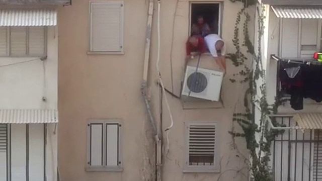 Установка кондиционера из окна дома закончилась фейлом. #фейл #падение #прикол #кондиционер