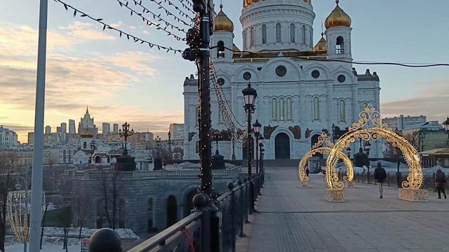 Москва, ранний мартовский вечер у Храма Христа Спасителя и на Патриаршем мосту.