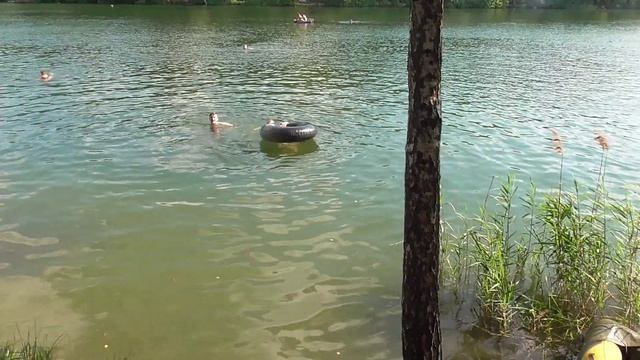 Прыжок в круг с тарзанке на Северном озере в Черноголовке.