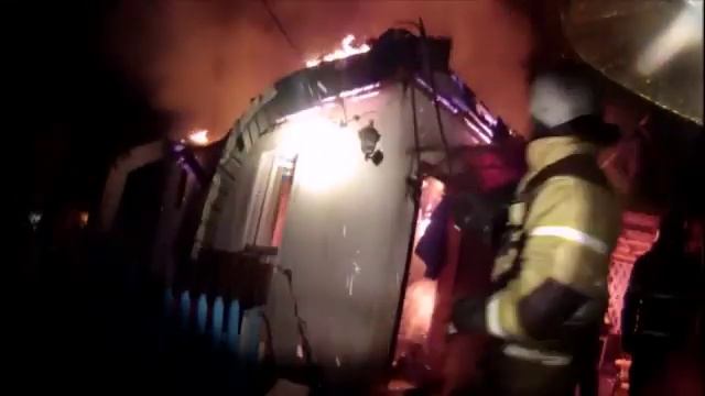 Глазами МЧС_ вскрытие кровли горящего барака