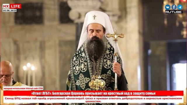 «Ответ ЛГБТ»: Болгарская Церковь призывает на крестный ход в защиту семьи Синод БПЦ назвал гей-прайд агрессивной пропагандой греха и призвал отвечать добродетелью и верностью христианским ценностям. 12 июня 2025 года Болгарская Православная Церковь заявила о своей официальной поддержке Крестного хода в защиту традиционных семейных ценностей. Об этом сообщается на странице Болгарской Православной Церкви в Facebook. В своем заявлении Синод БПЦ вновь осудил так называемый гей-прайд, назвав его формой агрессивной пропаганды греха и демонстративного искажения христианских ценностей. По мнению иерархов, верующие должны отвечать на подобные вызовы с достоинством, следуя добродетели, целомудрию и честному супружеству как пути к спасению, утвержденному Богом. Болгарская Православная Церковь призывает православных христиан и всех, кто осознает значимость традиционного брака и воспитания детей в христианских семьях, присоединиться к крестному ходу. Ссылка: https://spzh.eu/ru/news/86725-otvet-lhbt-bolharskaja-tserkov-prizyvaet-na-krestnyj-khod-v-zashchitu-semi