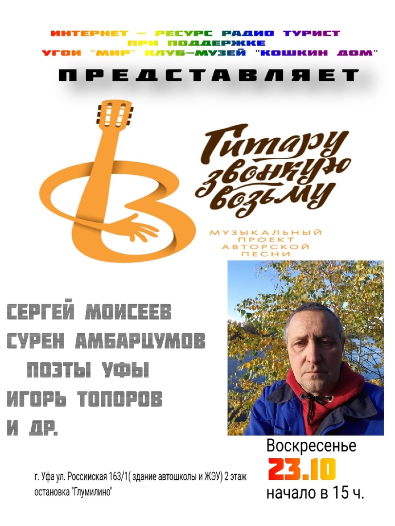 концерт музыкального проекта "Гитару звонкую возьму". У нас в гостях Сергей Моисеев, Сурен Амбарцумов, Игорь Топоров(поэт).