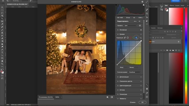 как убрать желтый рефлекс через кривые