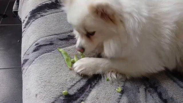 Spitz "Tsatsa"eats green peas