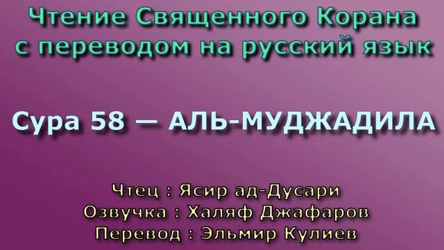 Чтение^Озвучка - Корана Чтец: Ясир ад-Дусари Озвучка: Халяф Джафаров Перевод: Эльмир Кулиев Источник YouTube канал: " Священный Коран "