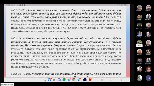 №21. Евангелие от Мф.616-624. Ведущий Александр Борцов. 22.01.2025
