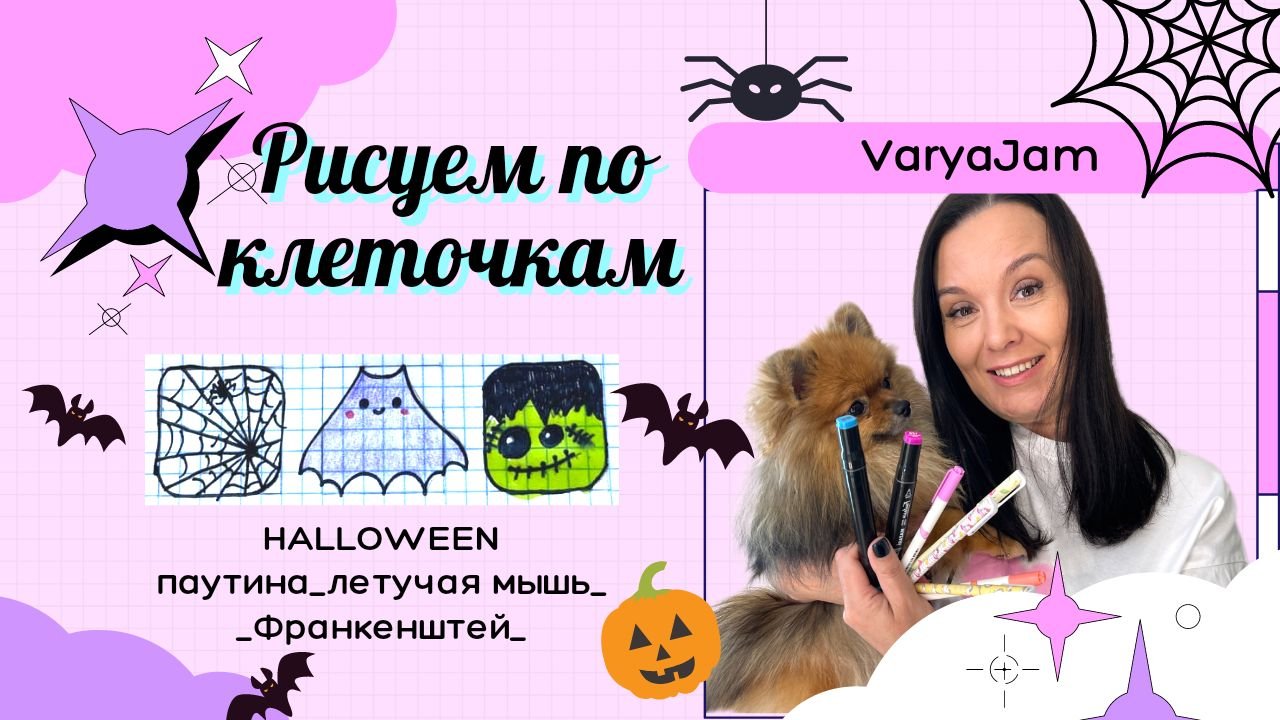 Рисуем по клеточкам. Паутина. Летучая мышь. Франкенштейн.