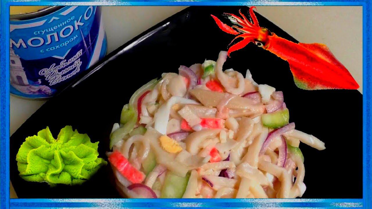 Салат из кальмаров по-вьетнамски, с заправкой на сгущённом молоке и васаби,
