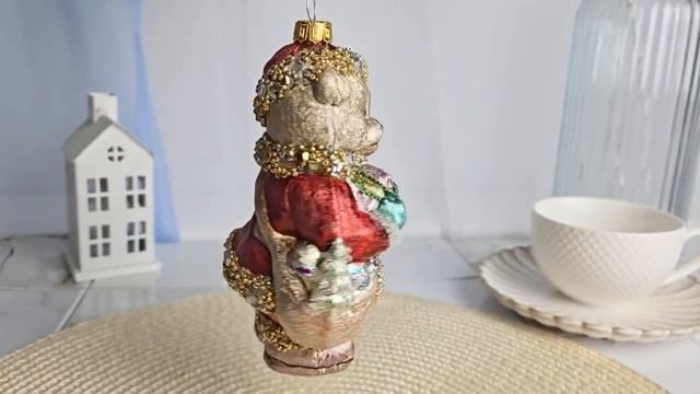 Ёлочная игрушка МИШКА В ГОЛУБЫХ РУКАВИЧКАХ, стекло, 15 см, 6501183A999-2