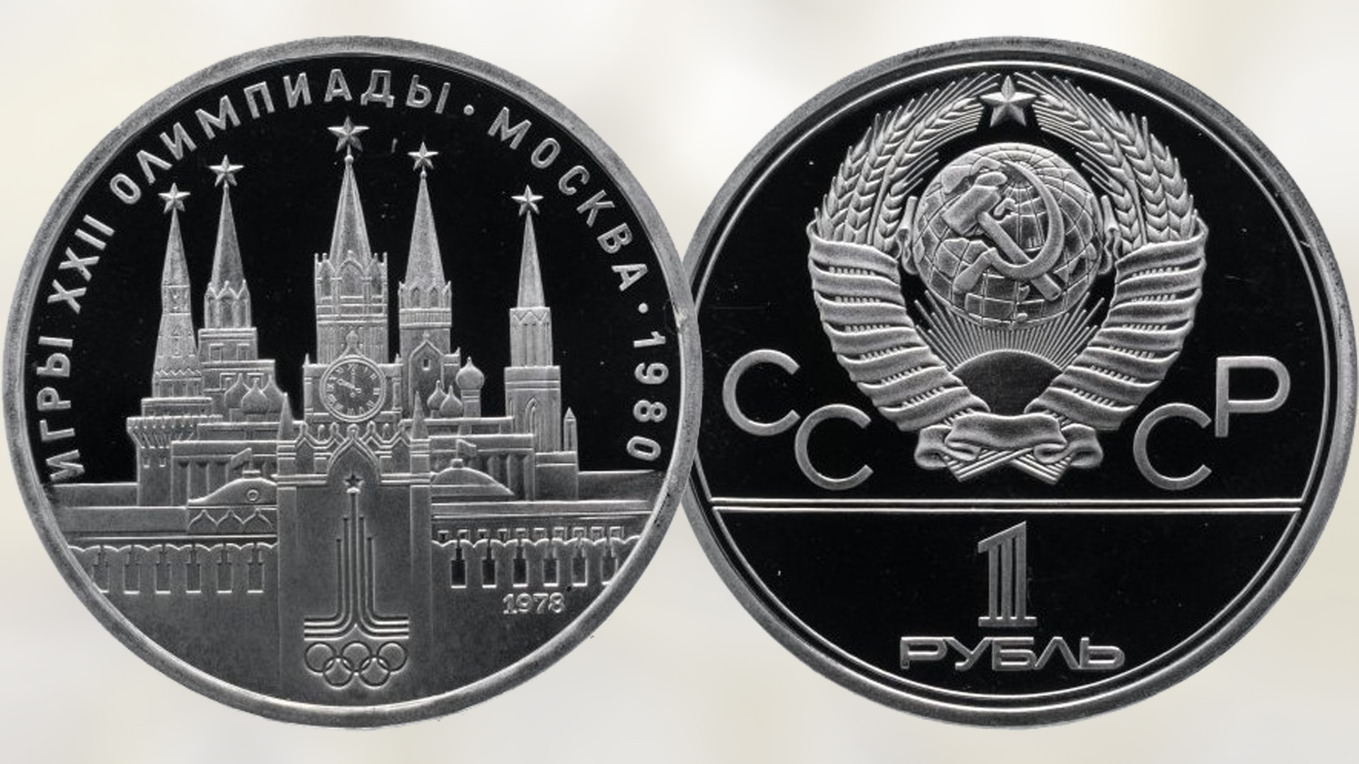 Монета 1 рубль "Кремль" Олимпийские игры в Москве.