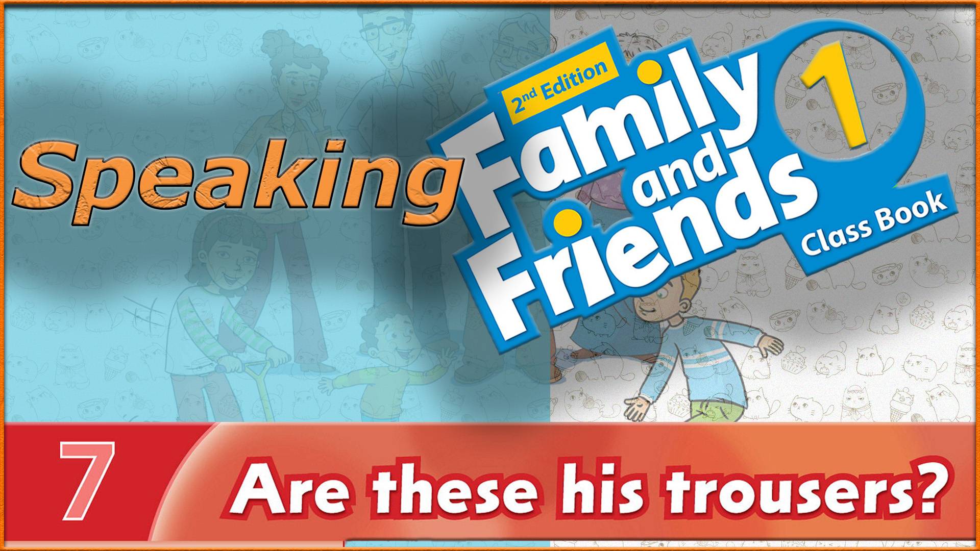 | Family and friends 1 - 2nd edition | Are these his trousers? | Speaking -------------------------------------------------- Сезон 1 - What`s this? Сезон 2 - Playtime! Сезон 3 - This is my nose! Сезон 4 - He`s a hero! Сезон 5 - Where`s the ball? Сезон 6 - Billy`s teddy! Сезон 7 - Are these his trousers? Сезон 8 - Where`s Grandma? Сезон 9 - Lunchtime! Сезон 10 - A new friend! Сезон 11 - I like monkeys! Сезон 12 - Dinnertime! Сезон 13 - Tidy up! Сезон 14 - Action Boy can run! Сезон 15 - Let`s play ball! Сезон 16 - Starter. Hello! Сезон 17 - Fluency Time! Сезон 18 - Culture