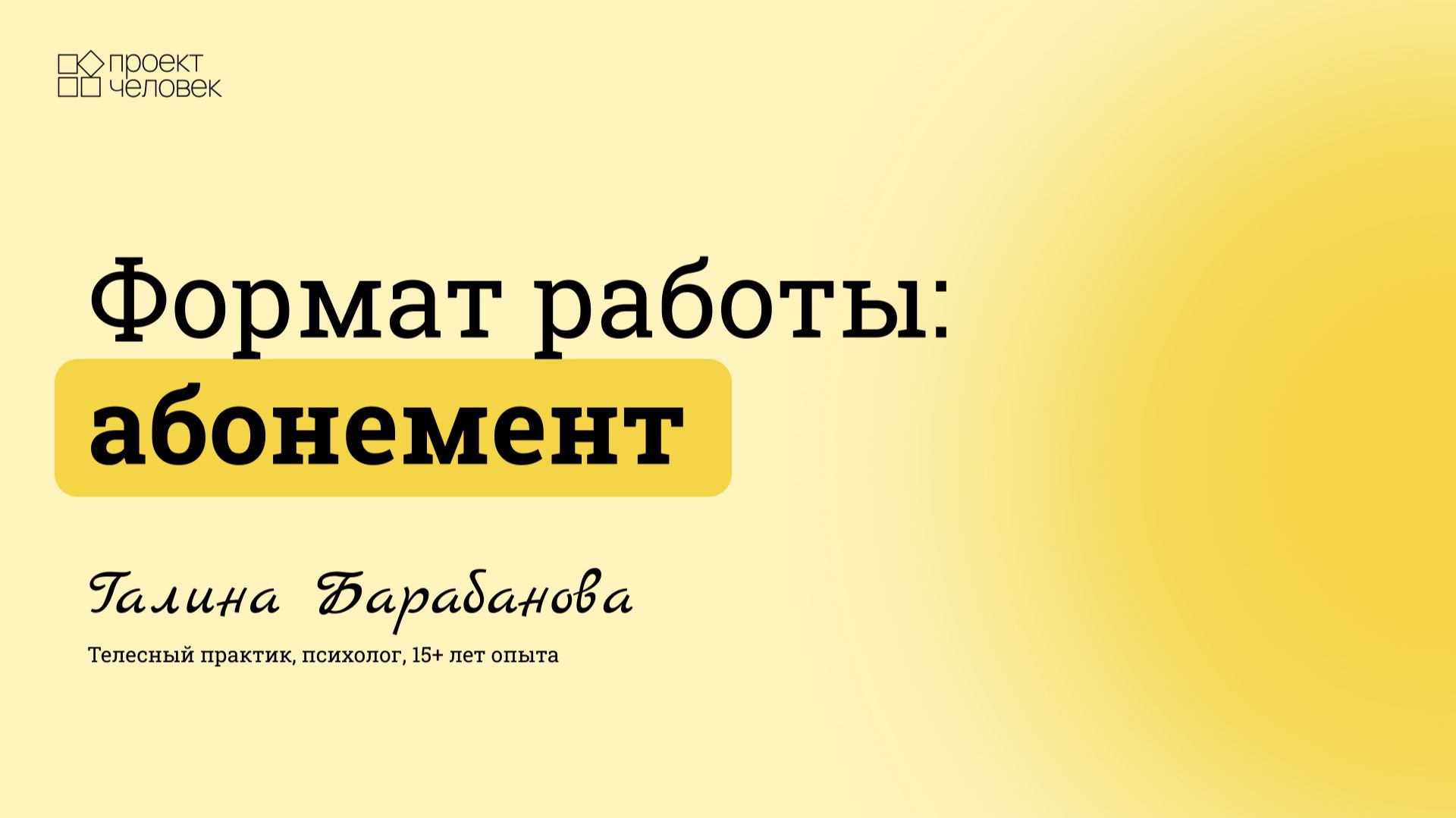 Формат работы АБОНЕМЕНТ | Галина Барабанова