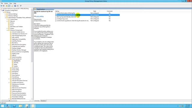 Modify maximum Log size using Group Policy in Windows Server 2012 R2