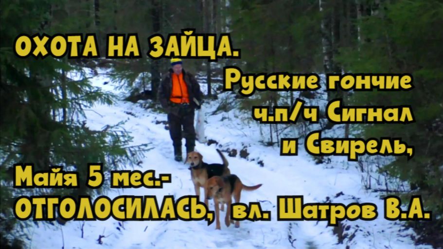 ОХОТА НА ЗАЙЦА. Русские гончие ч.п/ч Сигнал и Свирель, Майя 5 мес.- ОТГОЛОСИЛАСЬ вл. Шатров В.А.#hu