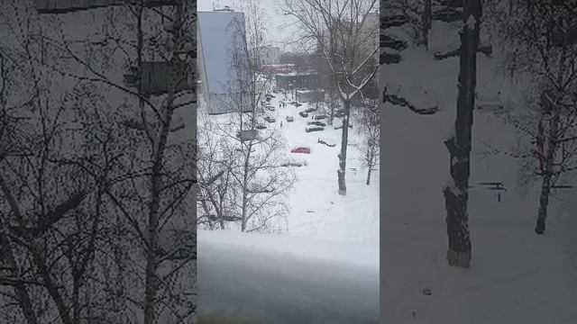после снегопада снега полно на парковке