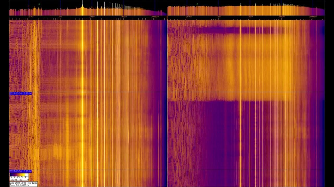 The left and right signals are taken from inductive sensors with ferromagnetic elements, but the left one is additionally connected to grounding on 2 stainless steel pins buried 1 m and spaced 1 m apart. You can see a large number of harmonics from the power supply and various artificial signals. Of interest are signals at frequencies below 50 Hz, where you can observe the operation of specialized equipment and communication signals of submarines and underground objects. Separately, it is worth considering signals in the region of 1-3 Hz on the left spectrum, which relate to the geomagnetic background, which is modulated by solar activity, They can be viewed in more detail in the video called “Signals from the Earth,” which are in the playlists below. The sound in the video is recorded in real time - a signal from sensors. О ПРОИСХОЖДЕНИИ ЧАСТОТНОЙ МОДУЛЯЦИИ СЕРПЕНТИННОЙ ЭМИССИИ https://youtu.be/bwWHggY1IVU?si=xAX1diRKI9MxQJ88&t=1740 Previous monitoring is in playlists: EMF monitor https://youtube.com/playlist?list=PLiRg2YCbXcwn41BHqADKVBep_TgVq6XUN Очень Низкая Частота ~ Very Low Frequency https://youtube.com/playlist?list=PLiRg2YCbXcwnp5DxM4PnSs7k_Rnypaqek SIGNALS IN THE GROUND https://youtube.com/playlist?list=PLiRg2YCbXcwl6f3Bf5arHbGSOCNE5U71O поддержать канал: 8-999-654-93-44