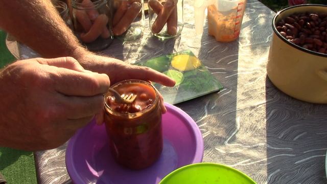 Автоклав. Сосиски с фасолью в томатном соусе.