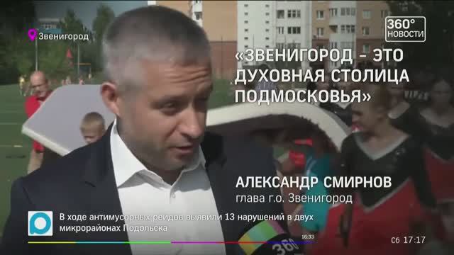 Звенигород почти ровесник столицы - ему исполнилось 865 лет. Несмотря на почтенный возраст, Звенигород выглядит молодо – потому что занимается спортом. На городском стадионе сегодня было много тех, кем город может гордиться, - команды по черлидингу, легкой атлетике, фехтованию и многие другие. Торжества, посвященные празднику, проходят по всему округу – соревнования, ярмарки, концерты. "У нас не просто праздник, у нас юбилей - 865 лет. Вы знаете, что Москва празднует 870 лет. Но мы еще спорим, кто больше. Поэтому мы считаем, что Звенигород - это духовная столица Подмосковья, как и Сергиев Посад" - Александр Смирнов, глава г.о. Звенигород. Поздравление от имени губернатора на главном празднике города зачитала министр соцразвития Подмосковья Ирина Фаевская. Лучших работников – педагогов, спасателей и сотрудников коммунальной сферы – министр наградила благодарностями главы МО. А позже вместе с жителями микрорайона Супонево открыла новый офис многофункционального центра. "Все государственные услуги будут доступны жителям, и операторы МФЦ будут им их оказывать. Самое большое количество услуг оказывается в области соцзащиты населения" - Ирина Фаевская, министр социального развития МО. Теперь в начале сентября здесь будут отмечать двойной праздник – кроме Дня города, еще и новоселье. Раньше МФЦ занимало небольшое помещение, здесь же площадь – четыре тысячи квадратных метров. Стало больше рабочих мест: пять окон для приема заявлений и одно - для выдачи. В подарок любителям футбола в честь Дня города состоялась встреча местного клуба «Смерч» со столичным «Гефестом». А для маленьких спортсменов открылась школа футбола. Занятия в ней начались уже в первый день работы. Наталья Калмыкова Канал 360, 2 сентября 2017 г. https://360tv.ru/news/obschestvo/v-zvenigorode-proshel-den-goroda/