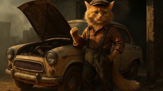 кот и ретро-автомобиль