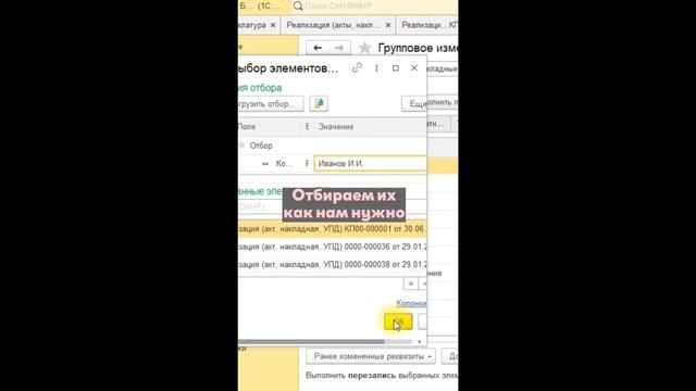 Как в 1С поменять значение сразу в каждой строке нескольких документов?