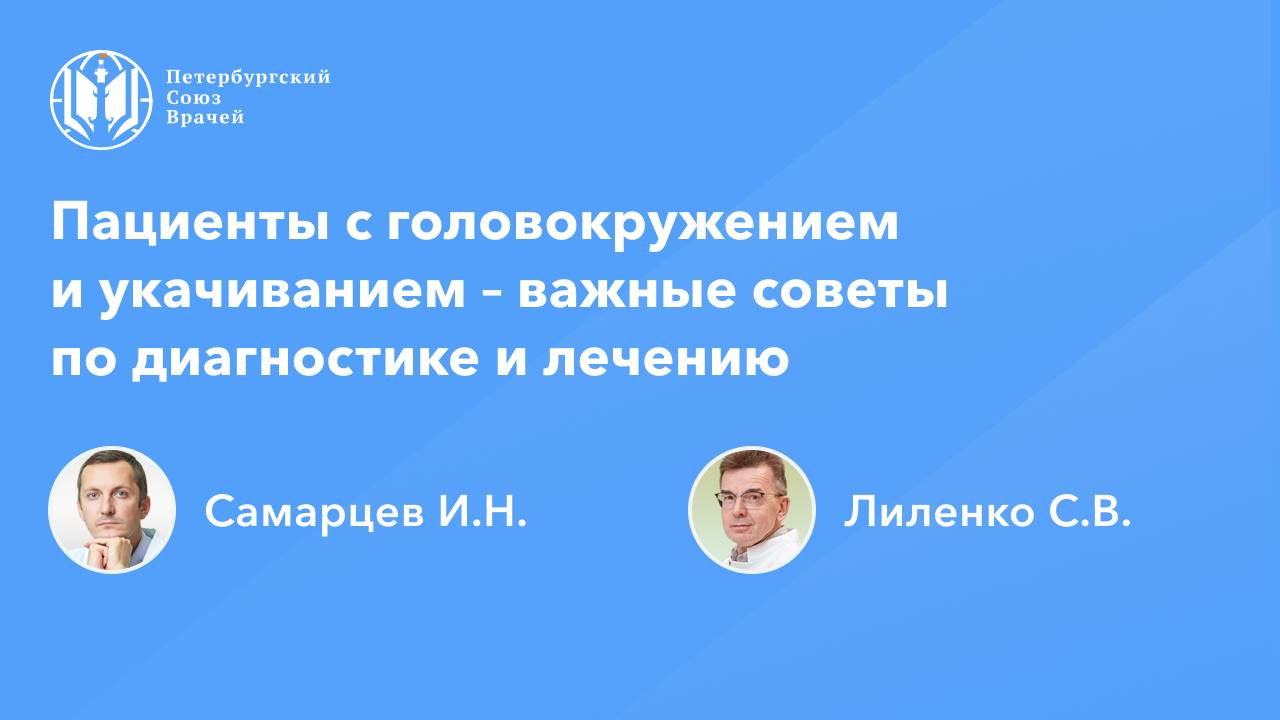 Пациенты с головокружением и укачиванием на приеме у врача-интерниста – важные советы по диагностике и лечению Дата проведения: 20.02.2025, 20:00 Страница мероприятия: https://spb.doctor/i/250220/ Программа: 1. Пациенты с головокружением и укачиванием на приеме у врача-интерниста – важные советы по диагностике и лечению Самарцев Игорь Николаевич 2. На приеме пациент с головокружением и аффективными расстройствами: алгоритм принятия решений Самарцев Игорь Николаевич 3. Ответы на вопросы О семинаре: В семинаре будут рассмотрены основные причины головокружения, с которыми встречаются врачи-интернисты, освещены диагностические алгоритмы, возможности медикаментозной терапии.