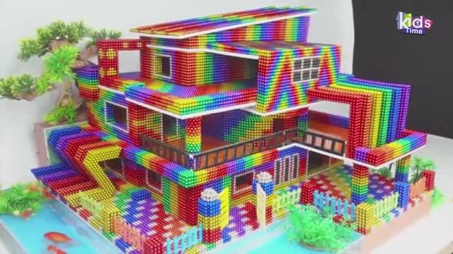 Магнитные шарики - Постройте Радужный Современный Особняк С Бассейном Для Милого Питомца