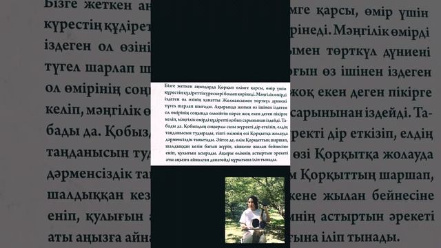 В легендах Коркыт выступает как могущественный борец за жизнь, бросающий вызов смерти. В поисках бессмертия он облетает все четыре стороны света на своей крылатой верблюдице Желмая, но так и не находит его источника во внешнем мире. Тогда он направляет поиск внутрь себя, и решает противостоять смерти тем, что у него уже есть - своим талантом виртуозного музыканта и чудотворными мелодиями своего магического кобыза. И ему это удается. Пока льется его музыка, очарованный мир слушает её с за- миранием сердца, и сама смерть не в силах приблизиться к Коркыту. Она терпит поражение в честной схватке, и лишь прибегнув к хитрости – обратившись в маленькую змейку и воспользовавшись усталостью Коркыта, смерти удается ис- подтишка настигнуть легендарного мудреца. Но Коркыт не был побежден, поскольку его бессмертные произведения музыкального искусства стали общечелове- ческим достоянием, и живут в сердцах людей по сей день. Легенда воспевает потенциальные возможности человека, возвышает его дух. Она гласит — поистине бессмертной мо- жет быть только созидательная деятельность человека во благодарю общества.